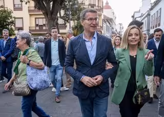 El presidente del Partido Popular, Alberto Nuñez Feijóo y la candidata a la Alcaldía de La Laguna, Ana Zurita, durante un paseo por San Cristobal de La Laguna, a 22 de mayo de 2023, en San Cristóbal de La Laguna, Tenerife, Islas Canarias (España). Feijó - Estefanía Briganty - Europa Press
