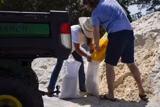 August 28, 2023, Pinellas Park, Florida, USA: Pinellas Park residents prepare sandbags at Helen S. Howarth Community Park, in preperation for Tropical Storm Idalia, soon expected to become a major hurricane and aiming for Florida's Gulf Coast later this - Europa Press/Contacto/Martha Asencio-Rhine