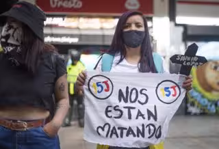 Protestas en Bogotá contra la reciente ola de violencia que sacude en los últimos dos meses a Colombia.