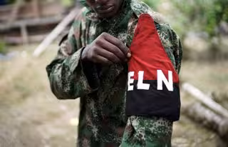 Un rebelde del Ejército Liberación Nacional (ELN) muestra su brazalete mientras posa para una fotografía, en las selvas del noroeste de Colombia, el 31 de agosto de 2017 - REUTERS - Archivo