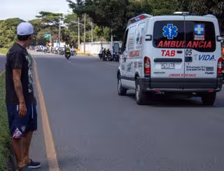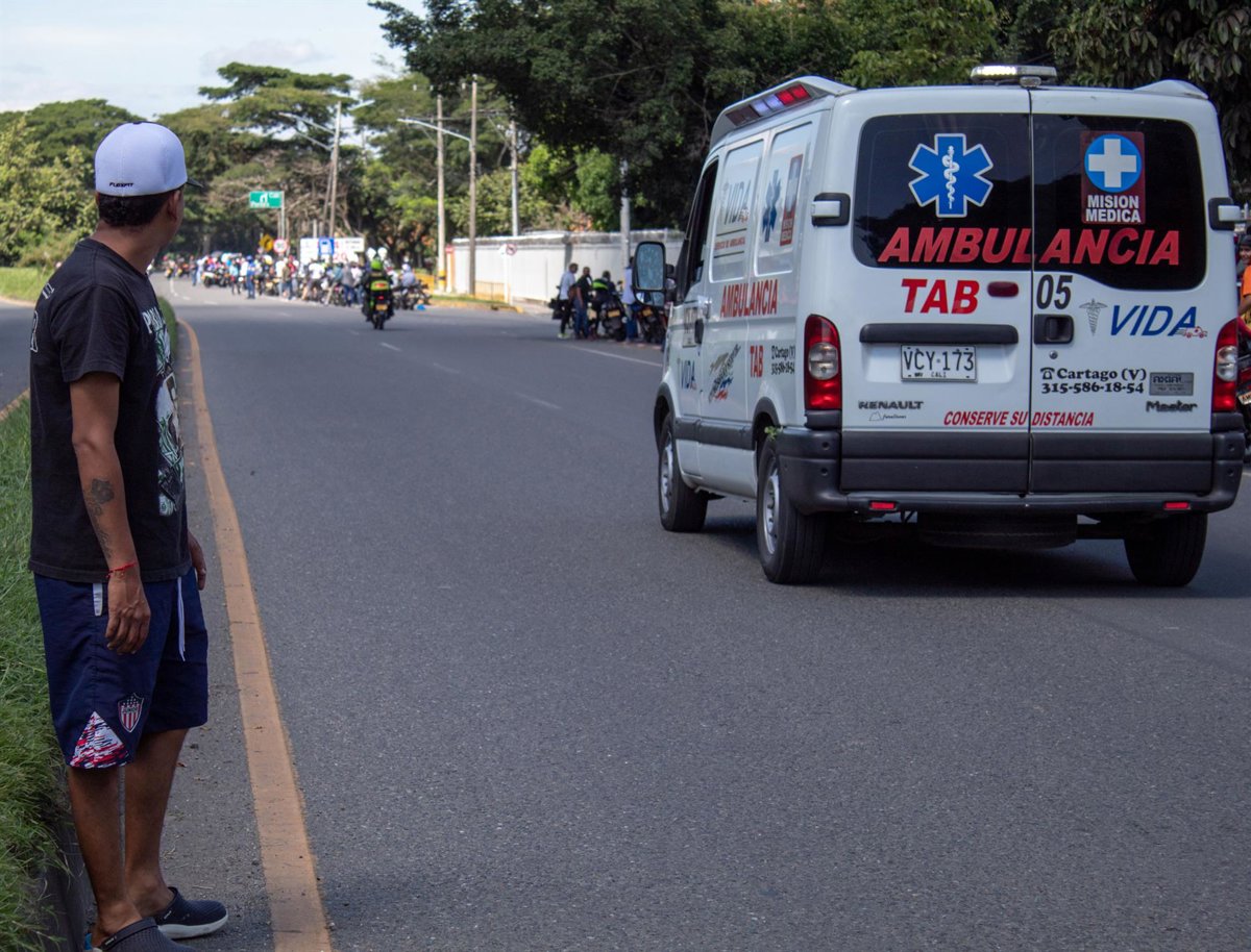Archivo - May 11, 2021, Cartago, Valle del Cauca, Colombia: An ambulance passes by as people waiting for gasoline supply on the road from Cartago to Zaragoza Valle del Cauca, May 11, 2021 amid protests and road closings amid anti-government protests in Co - Europa Press/Contacto/Sebastian Osorio - Archivo