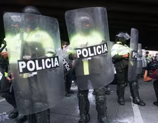 Archivo - 21 November 2020, Colombia, Bogota: Police officers stand guard during a march against the social and economic policies of Colombian President Ivan Duque. Photo: Daniel Garzon Herazo/ZUMA Wire/dpa