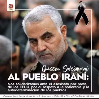 Colombia.- Las FARC condenan el ataque de EEUU que mató a Soleimani y marcharán - TWITTER OFICIAL DEL PARTIDO POLÍTICO DE LAS FARC