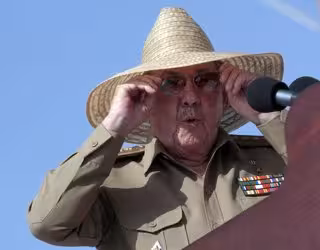 El presidente de Cuba, Raúl Castro, se dirige a la multitud durante un evento co