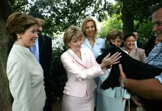 Archivo - La primera dama de Estados Unidos, Laura Bush, junto con su homóloga salvadoreña, Ana Ligia Mixco, durante una visita a la Casa Blanca, en julio de 2004 - JOYCE NALTCHAYAN/WHITE HOUSE VIA GETTY IMAGES