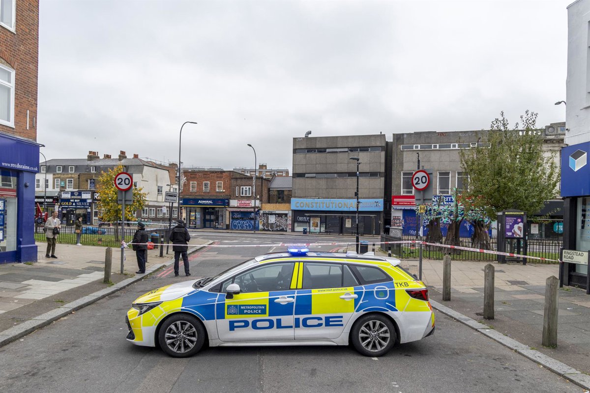 October 15, 2025, London, London, UK: London, UK. Police guard a cordon in Catford south east London after reports of stabbing on Rushey Green this morning. - Europa Press/Contacto/Marcin Nowak