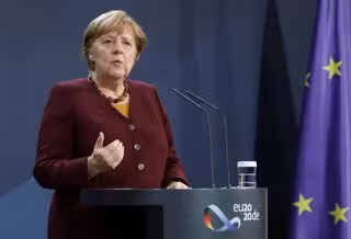 Archivo - 19 November 2020, Berlin: German Chancellor Angela Merkel speaks with the media representatives after an interactive conversation with nursing patients, their relatives and carers at the chancellery. Photo: Michael Sohn/AP Pool/dpa