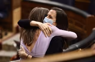 La ministra de Igualdad, Irene Montero (i), abraza a la ministra de Derechos Sociales y Agenda 2030, Ione Belarra - Eduardo Parra - Europa Press