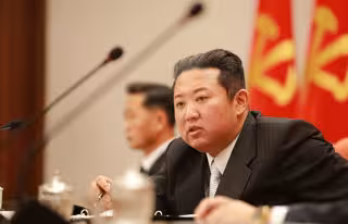 01 January 2022, North Korea, Pyongyang: An undated picture provided by the North Korean Central News Agency (KCNA) shows North Korean Leader Kim Jong-un (C) speaking during a meeting of the Central Committee of the ruling Workers' Party held from 27-31 - -/KCNA/dpa
