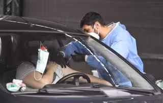 20 November 2021, North Rhine-Westphalia, Bergisch Gladbach: A woman driver receives her vaccine jab at the vaccination drive-in centre of the Bergisch-Gladbach fire department, after its reopning. Photo: Roberto Pfeil/dpa - Roberto Pfeil/dpa