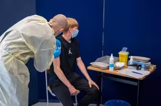 09 August 2021, Berlin: A health worker inoculates a student with the jab of a COVID-19 vaccine at a vocational school. Photo: Christophe Gateau/dpa