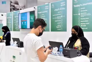 Archivo - 03 August 2021, Saudi Arabia, Medina: A young man registers at the vaccination centre. Photo: -/Saudi Press Agency/dpa - -/Saudi Press Agency/dpa - Archivo