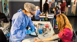 Archivo - Una paciente realizando una donación de sangre en un hospital de Argentina durante la pandemia por COVID-19 - OMS - Archivo