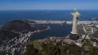 09 August 2020, Brazil, Rio de Janeiro: A general view of the statue of Christ the Redeemer, the main tourist spot in Rio de Janeiro, which continues to be closed to visitors since the end of March 2020 amid the devastating coronavirus pandemic, to whic