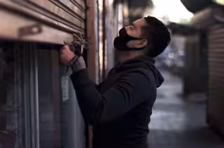 Un hombre reabre su tienda en Santiago de Chile durante la pandemia.