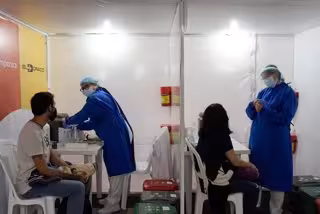 16 July 2021, Colombia, Bogota: Public health workers work at the first Corona vaccination centre established in a Colombian airport. Photo: Mariano Vimos/colprensa/dpa - Mariano Vimos/colprensa/dpa