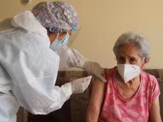 23 March 2021, Peru, Lima: An elderly woman receives her dose of a coronavirus vaccine as part of the Home Care Program for elderly. Photo: Carlos Garcia Granthon/ZUMA Wire/dpa