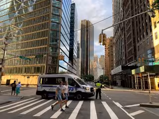 Archivo - 07 June 2020, US, New York: People walk in front of a police vehicle at an almost empty street after the Mayor of New York City Bill de Blasio has lifted the city curfew amid the spread of the coronavirus a day before its original ending day.