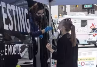 Archivo - 29 September 2021, US, New York: A health worker takes a swab from a woman for a coronavirus test at a Pop Up Testing Site in Columbus Circle in New York City. Photo: Debra L. Rothenberg/ZUMA Press Wire/dpa