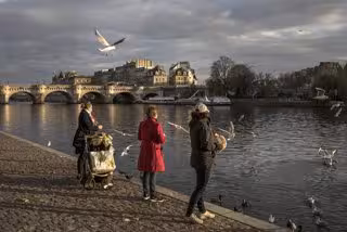 Mujeres con mascarilla junto al río Sena en París, Francia - 2020 GETTY IMAGES / SIEGFRIED MODOLA - Archivo