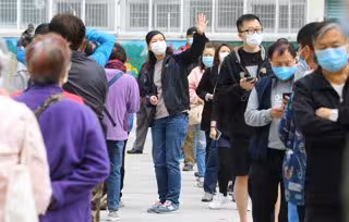 Un grupo de residentes de uno de los edificios en los que se ha localizado un último brote de la COVID-19 en Hong Kong hace turno para someterse a una prueba de coronavirus. - DICKSON LEE / ZUMA PRESS / CONTACTOPHOTO