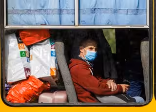 Archivo - 20 May 2020, Ukraine, Chop: A passenger wearing a face mask sits on a bus at the Tysa international automobile checkpoint on the Ukraine-Hungary border during the coronavirus quarantine. Photo: -/Ukrinform/dpa