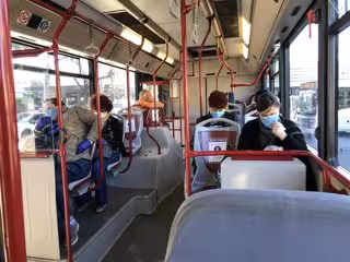 Archivo - 04 May 2020, Italy, Rome: People wearing face masks sit in a bus that runs from Roma Termini railway station to the Trastevere district, as Italy easing the restrictive measures after the lockdown due to the spread of the coronavirus. Photo: A