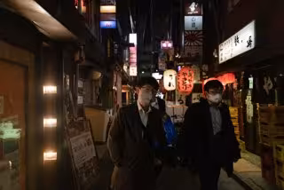 November 4, 2021, Tokyo, Japan: Businessmen wearing facemasks as a precaution against the spread of covid-19 seen walking through a side alley in Shimbashi district. - Europa Press/Contacto/Stanislav Kogiku
