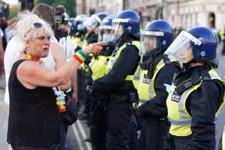 19 July 2021, United Kingdom, London: Police block anti-vaccination protesters during a demonstration in Parliament Square after the final Coronavirus legal restrictions were lifted in England. Photo: Jonathan Brady/PA Wire/dpa - Jonathan Brady/PA Wire/dpa