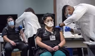14 December 2020, US, New Mexico: St. Vincent Hospital workers, receive the Pfizer coronavirus (COVID-19) vaccine. Photo: Eddie Moore/Albuquerque Journal via ZUMA/dpa