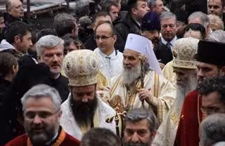 El jefe de la Iglesia Ortodoxa de Serbia, el patriarca Irineo, en el centro de la imagen con birrete blanco - IGLESIA ORTODOXA DE SERBIA