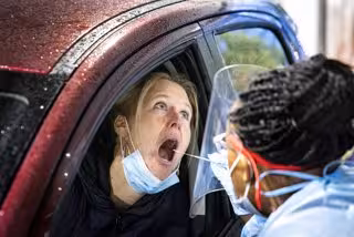 Archivo - 17 November 2021, Netherlands, The Hague: An employee of GGD, the Dutch national health organisation, performs a Coronavirus test from a woman. Photo: Ramon Van Flymen/ANP/dpa - Ramon Van Flymen/ANP/dpa - Archivo