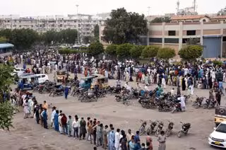 Archivo - Un grupo de personas hace cola para recibir la vacuna contra el coronavirus en Pakistán