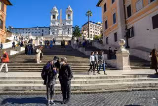 Archivo - Turistas con mascarilla en la Plaza de España de Roma - VINCENZO NUZZOLESE / ZUMA PRESS / CONTACTOPHOTO