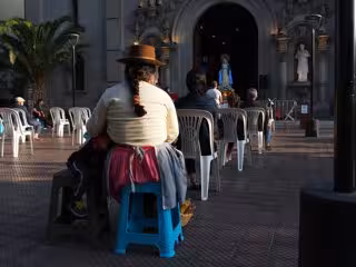 Una mujer en un acto religioso adaptado a las medidas contra la COVID-19 en Lima. - CARLOS GARCIA GRANTHON / ZUMA PRESS / CONTACTOPHOT