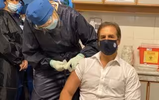 El presidente de Uruguay, Luis Lacalle Pou, recibe la primera dosis de la vacuna contra la COVID-19.
