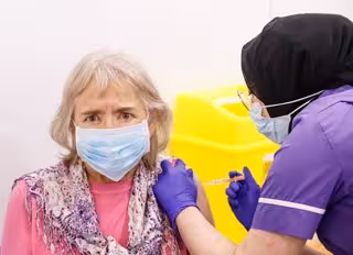 Archivo - 08 February 2021, England, Leeds: A woman receives the Oxford/AstraZeneca coronavirus vaccine at the Elland Road vaccination centre. Photo: Danny Lawson/PA Wire/dpa