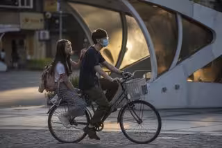26 May 2020, Taiwan, Taipeh: A cyclist wears a face mask near the National Taiwan University in Taipei, amid the Coronavirus outbreak. Photo: Brennan O'connor/ZUMA Wire/dpa - Brennan O'connor/ZUMA Wire/dpa - Archivo