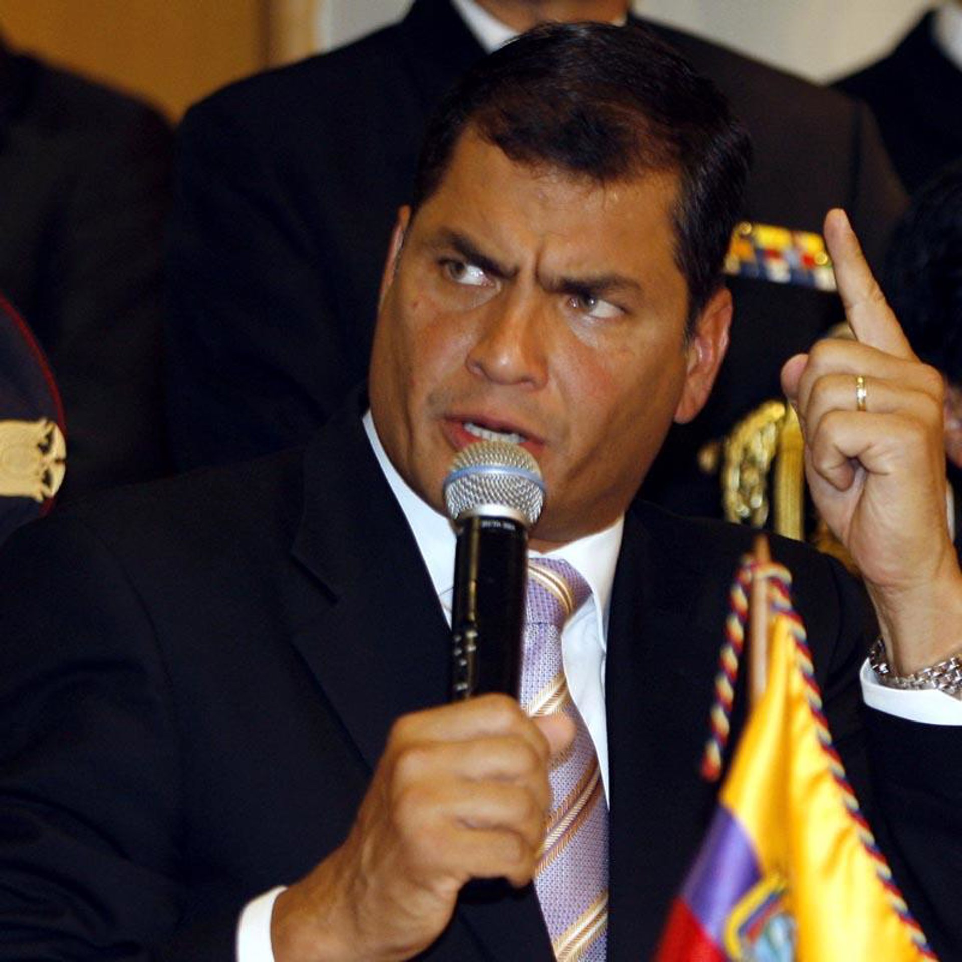 Correa volvió a criticar el ataque de Colombia contra un campamento de las Fuerzas Armadas Revolucionarias de Colombia (FARC)en Ecuador, ocurrido en marzo de 2008 y del que el ex ministro de Defensa colombiano y candidato presidencial Juan Manuel Santos dijo no arrepentirse. En este sentido, el dirigente ecuatoriano criticó a los "sectores guerreristas" que dicen "sentirse orgullosos de ese ataque, de esa cobardía".
