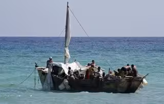 Emigrantes cubanos intentando llegar en una balsa a Estados Unidos