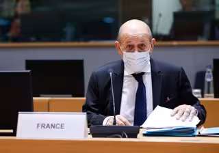 HANDOUT - 15 November 2021, Belgium, Brussels: French Foreign Minister Jean-Yves Le Drian attends the European Union Foreign Affairs Council meeting at the EUheadquarters in Brussels. Photo: Mario Salerno/EU Council/dpa - ATTENTION: editorial use only - Mario Salerno/EU Council/dpa