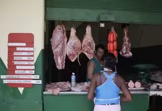 Una mujer compra carne en una tienda de La Habana (Cuba)