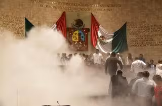 Diputados del Congreso del estado mexicano de Oaxaca se han enfrentado en la tribuna cuando a una representante de la colación PRD-PAN abría la sesión sobre la votación de las leyes electorales. Miembros del PRI también han lanzado gas lacrimógeno y han vaciado varios extintores para evitar que se celebrase la sesión extraordinaria.