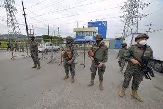 Archivo - 23 February 2021, Ecuador, Guayaquil: Armed security forces stand outside regional detention center No. 8 after a mutiny. At least 50 people have been killed in several prison mutinies in Ecuador, according to police on Tuesday. Photo: Marcos - Marcos Pin Mendez/dpa - Archivo