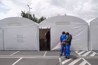 Archivo - Dos pacientes revisan sus resultados de pruebas PCR en Quito. - Juan Diego Montegro/ DPA - Archivo