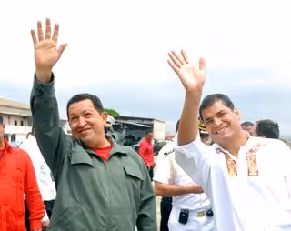 Los presidentes de Venezuela, Hugo Chávez; y de Ecuador, Rafael Correa.