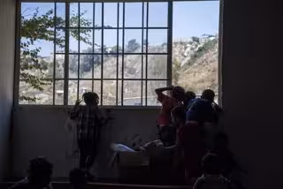 Archivo - Niños migrantes esperan en el albergue "Embajadora de Jesús" en la ciudad fronteriza mexicana de Tijuana.