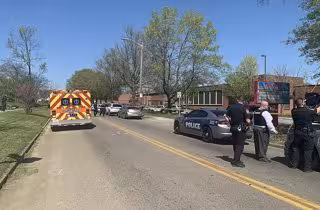 Archivo - 12 April 2021, US, Knoxville: Police surround Austin-East Magnet High School in the East Tennessee city of Knoxville after a shooting left one person dead and a police officer injured. Photo: Knoxville Police Department/ZUMA Wire/dpa
