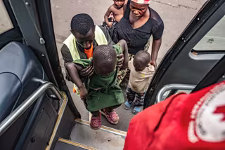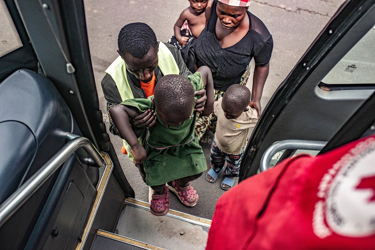 Archivo - BUGARAMA, Dec. 7, 2025 -- A man helps a displaced child from the Democratic Republic of the Congo (DRC) get on a bus heading for a refugee camp in the town of Bugarama in neighboring Rwanda, on Dec. 5, 2025. The March 23 Movement (M23) rebels h - Europa Press/Contacto/Zanem Nety Zaidi - Archivo