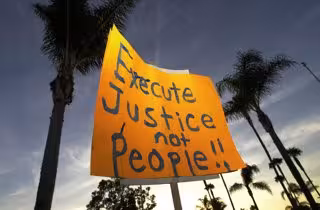 Archivo - Pancarta en contra de la pena de muerte en Estados Unidos.